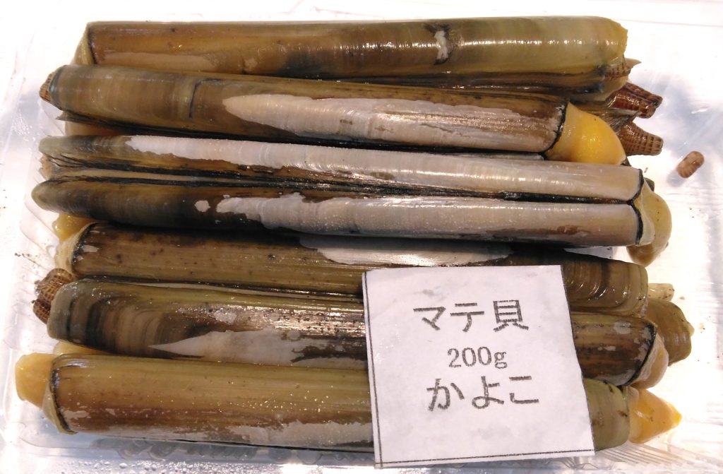 う~ん立派な大きさ。貝殻の横幅を計ってみると8センチ超え。100/130gの表示がありましたから、間違いなく100グラムはある、ということ。三重県産の2キロ入りネットでありました。相場について担当者に尋ねてみると、今年はほぼ昨年並みなんだそうだけど、今後強含みで推移しそう、とのことでした。買うなら早い方がいいかも。ついでだから、昨日取材した、千葉県産も見てもらおうかな。
