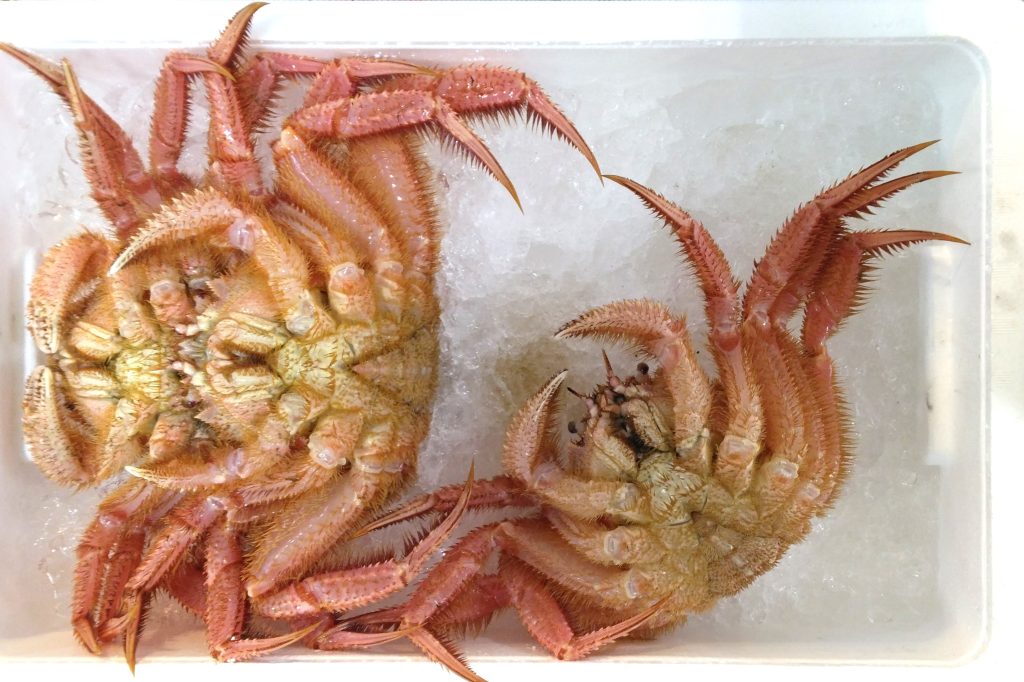 そして、せっかく毛ガニが登場してくれたので、もうひとネタもカニにしましょうかね。そういえば先日、でっかいワタリガニも入荷してたんですよね。ま、こちらはまた入荷があるでしょうから、また今度。それでは別の赤いカニを…。