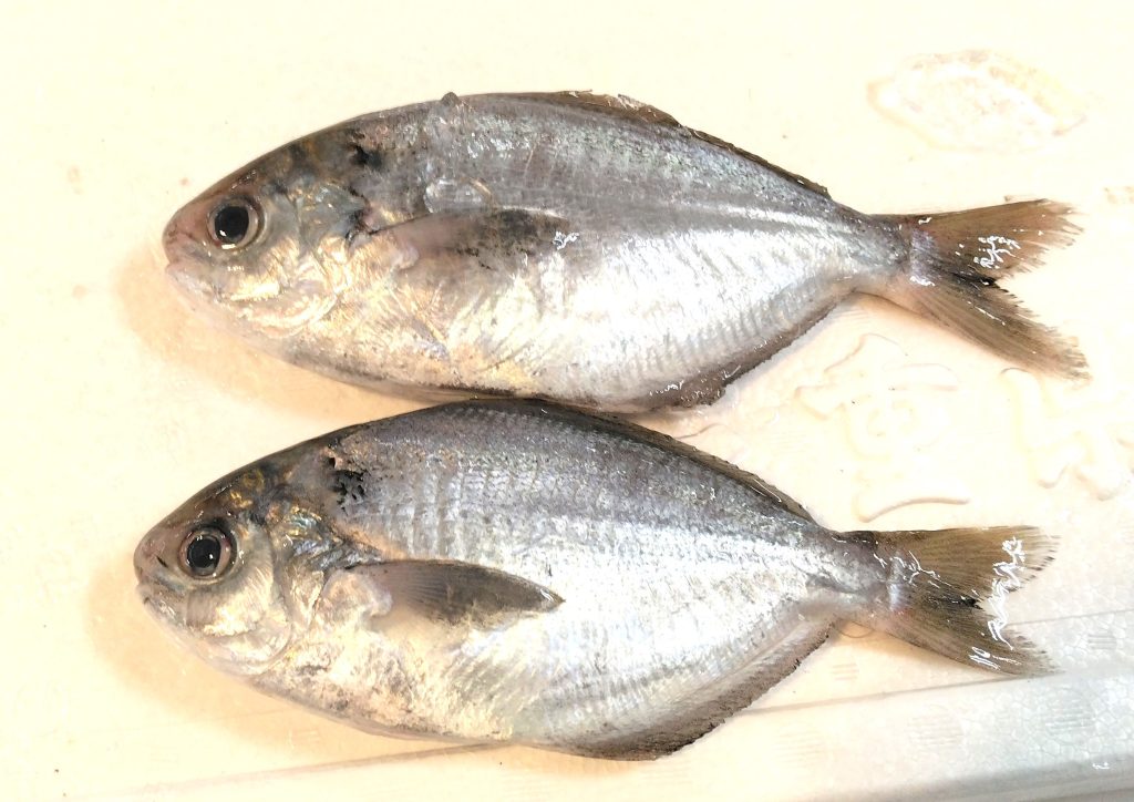 氷水の中に沈んでしまって、姿が良く分からないので、フタの上に出てきてもらいました。この魚はエボダイ。三重県産の5キロ27尾入りでした。あ~小さいな~、と思ったんですけど、そうでもないらしい。大きくても30センチぐらいにしかならないんだそう。この魚は20センチちょっと。普通のサイズと言えるのかも。前回も書いたけど、バターフィッシュなる、似て非なる魚がいて、漬け魚とか干物原料になっていたらしい。白みりん漬けとか干物を何回か食べたことがあって、小さい割には脂もあるし、身離れもいい魚だな、と思っていたんですよね。本エボダイは、モリ介は、たぶん食べたことがないと思われます。