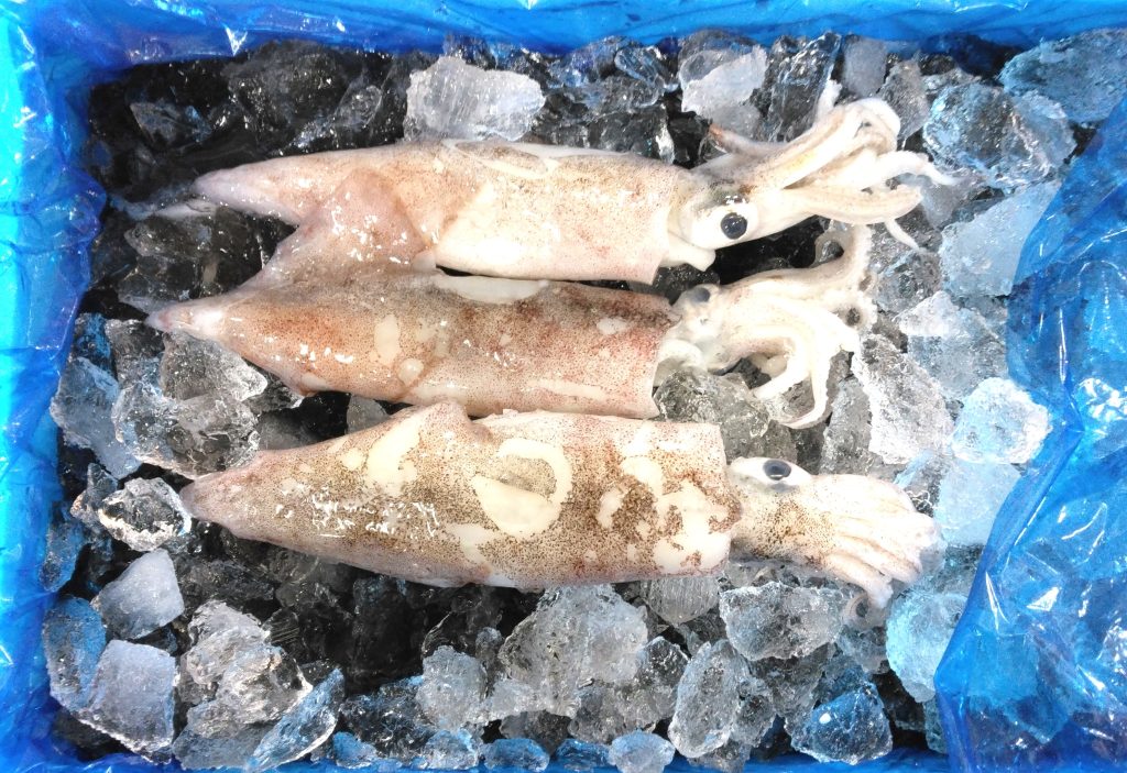 そう、姿を見せ始めるのはヤリイカ。これは定置網に入った、宮古産のもの。19尾入りの2.4キロでした。胴の部分で約20センチちょっと。やや大き目サイズはこの1箱だけ。あとは小さい物がいくつか。そして同じく宮古産でトロールものも入荷してましたよ。