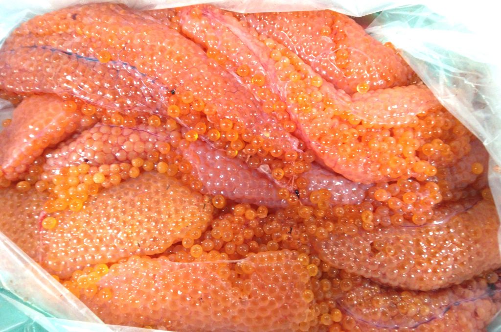 なぜなのか、黄色味が強くなってしまう写真に納得がいかないんですが、北海道はオホーツク産の生筋子です。実物はもっと赤いんですよね。箱には3キロ入ってました。秋サケイクラらしい、直径6~7ミリぐらいの大粒でありましたよ。これからお正月食材として、イクラを購入される方も多いと思いますが、粒の大きさが3、4ミリであれば、まず秋サケのイクラではありませんね。おそらくは、ベニサケ卵かマス卵ではないかと。簡単に言えば、ベニサケの塩スジコがありますよね。それを塩漬けしないで、一旦冷凍し、再度解凍してほぐして味付けをしたもの、である可能性が高いです。それでもイクラの味はしますけどね。回転ずしでも軍艦巻きのイクラは、秋サケのそれを使ってない事がほとんどになりました。モリ介も、その粒の小ささに、当初は違和感を覚えましたが、もう慣れちゃいました。大粒の秋サケイクラなんか、高くて使えるはずもないし。お正月のおせちぐらいは、大粒イクラを食べたい気もしますが、ま、ベニイクラでもしょうがないか。その内養殖ギンサケのイクラなんかが出回るようになるかも。現状では、身のほうが出荷できるサイズになっても、卵はまだ未熟で、その卵は、といえば、生臭みがすごくてなかなか商品化できるものではないらしい。卵を成熟させれば、養殖の期間が長くなるんで、コストが増大する、ということのようですよ。難しいものですね。となれば天然の秋サケに頑張ってもらうしかないけど、今どこに居るんでしょうかね。