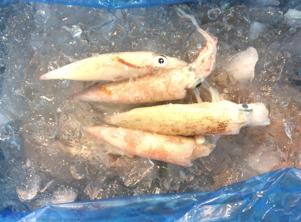 尾数は不明の4キロ入りでした。胴の部分の長さは12、3センチほど。はっきり言ってかわいいサイズ。本来は、もっと赤みがはっきりわかる、きれいに並べられた釣りものが入荷するはずなんですが、スルメイカの釣り漁が休漁中のため、ヤリイカについても釣りものが無いらしい。担当者によれば船は出漁していないそう。ヤリイカ狙いでも、スルメが揚がったりしたら、困った事になりますもんね。果たして今後、釣りヤリイカの姿を見る事は出来るんでしょうか。