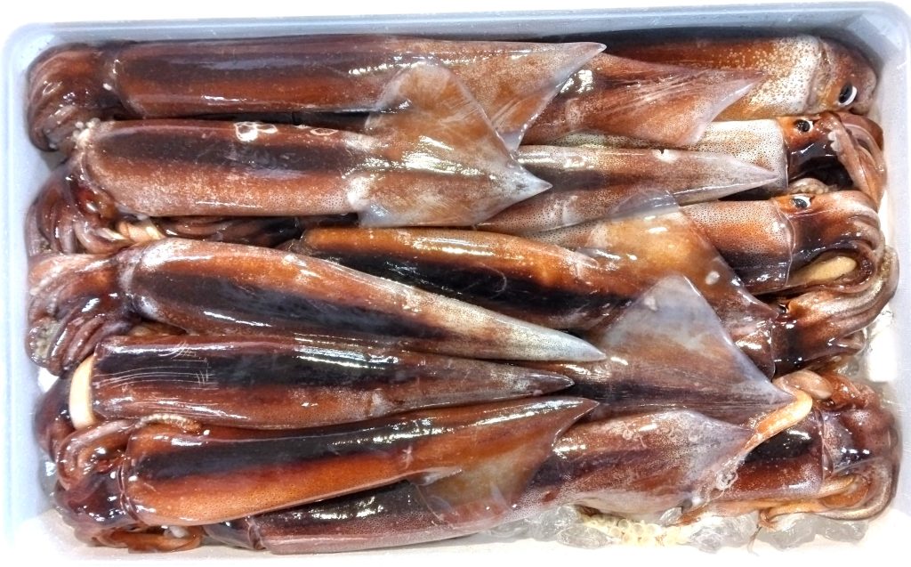さてと卸売場へと行きましょうか。荷物は少ない。相当に海も荒れたようですから、仕方がないですね。でも少ないながらも魚はありますよ。ネタとしては繰り返しになる部分もあるんですがね。という訳で、最初のご紹介は、入荷が続くうちは頻繁に登場するこの商材。釣りものが姿を消して、定置ものやトロールものしかなくなってしまったんですが、釣りものに匹敵するくらい、良い品質のものも入荷してます。最近大型の約5キロ、15尾サイズの搬入も続いてる。そう、その商材とはスルメイカ。