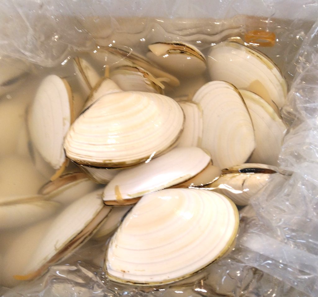 箱には「白貝」と書いてありました。シラガイ?シロガイ? 調べてみるとどうやらシロの方が正解らしい。北海道は銭函産の5キロ。入り数は不明。銭函ってどこ? 実はモリ介は知ってます。日本海側の漁港で、地図で言うと札幌と小樽の間ぐらい。子供の頃ですけど、銭函駅の入場券が大流行りしたんですよ。縁起がいい、みたいな感じで。同じような流行りでは、「愛国から幸福行き」の乗車券、なんてのもありましたよね。話を戻してシロガイ。標準和名はサラガイ、と呼ぶんだそう。こちらではサラガイ、というとホタテ貝の事を指しますがね。決して珍しい貝ではなく、ホッキ貝に混ざって獲れることも多いんだとか。もしかして、見逃していた?珍しがっていたのはモリ介だけかも。ただ、漁獲は太平洋側のほうが多くて、日本海側ではそれほどでもないそう。生食もできるそうだけど、湯通しをした方が甘味が増す、とのこと。貝殻が重くて、その割には身が小さく、いわゆる歩留まりが悪い貝、と書かれてました。味も貝らしい風味に欠ける、ってさんざんだな。逆にここまで書かれると、どんな感じで風味に欠けるのか、興味が出ちゃいますね。誰か食べてみたら、感想を教えて。