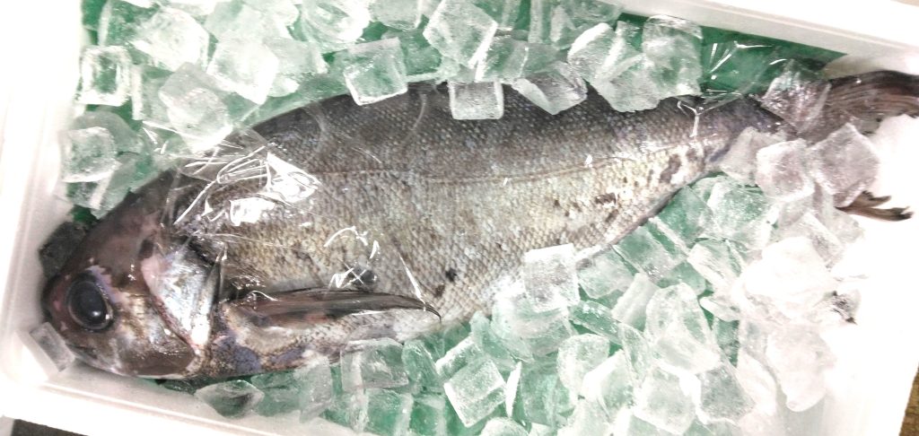 半年ぶりの登場ですね。この魚はメダイ。三陸は宮城県産。体長60センチの2.9キロでありました。やっぱり旬となる今の時期が脂ものってくるそう。近場で鮮度も良好だし、お刺身でしょうかね。だけど日本の伝統的な食文化の中では、刺身ではなく、味付けの焼魚向けの魚だったようですよ。そういえばモリ介も、若手営業時代には、メダイの粕漬けを販売したことがありました。原料産地は、ニュージーランドあたりでしたかね。脂は少なめでしたが、味は良かった記憶があります。この宮城産は間違いなくそれ以上に旨いでしょうから、お店で見かけたらぜひお買い上げください。