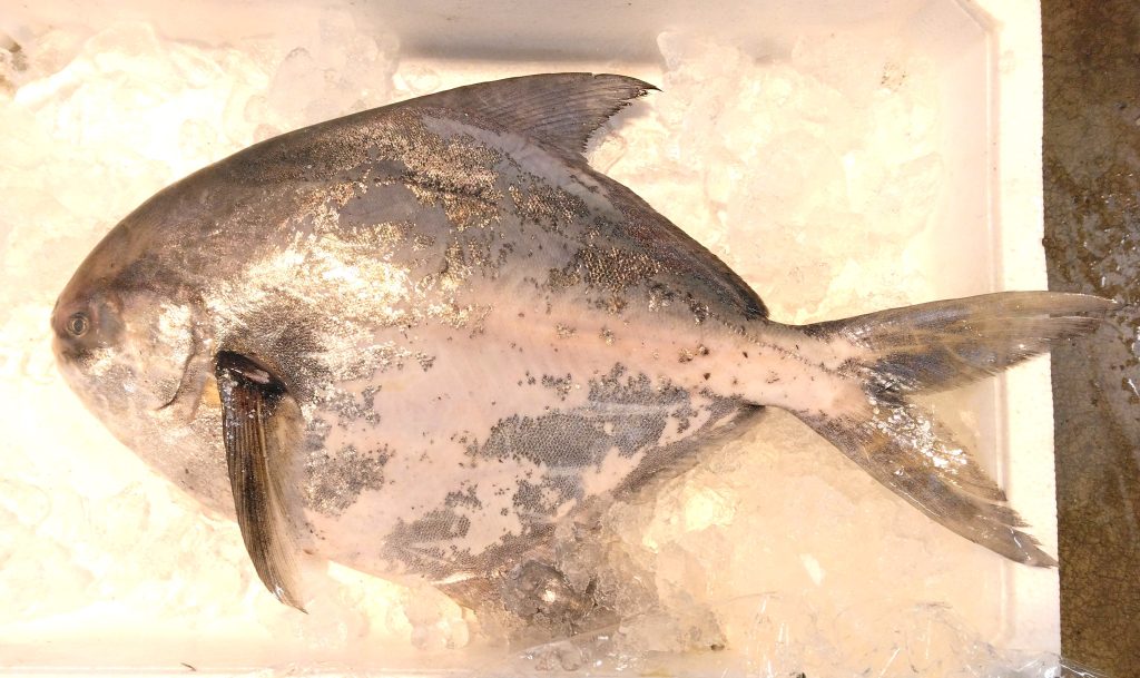マナガツオです。産地は大阪湾。1.6キロのまずまずのサイズ。体長は40センチで、体高っていうか、上下の幅は25センチ。お値段はさすがの高級魚。アカムツほどではないけど、キンキあたりとはいい勝負、と言う感じ。ね?高級魚でしょ。関西地方では珍重される魚のひとつ。何でもマナガツオのマナは、「真魚」と書くそうで、とりわけ味がいい魚、という意味だそう。このぐらいの大きさから、3キロぐらいまでのサイズが脂ののりがいいそう。刺身にすると白濁した身なんだけど、この白濁は脂。絶対旨いヤツじゃん。確か焼いても美味しいんですよね。あ~、食べたいな~。誰かがもう食べちゃってるか。うらやましい。